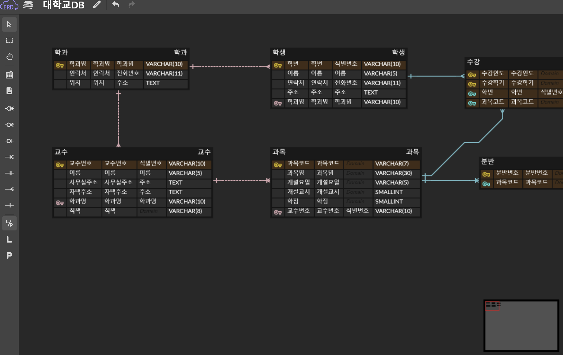 또 연결하게 되면, 외래키가 자동으로 설정된다.